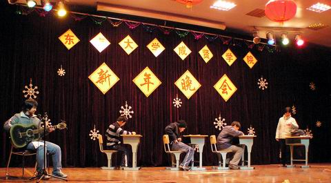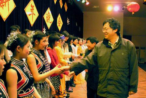 2004年12月29日晚,晓庄校区报告厅张灯结彩,喜气洋洋,学院2005新年文艺晚会在这里举行。云鼎国际4118welcome党委副书记、副校长、云鼎国际4118welcome董事会副董事长、云鼎国际4118welcome院长左惟以及云鼎国际4118welcome党政领导、教师和同学们欢聚一堂共迎新年。