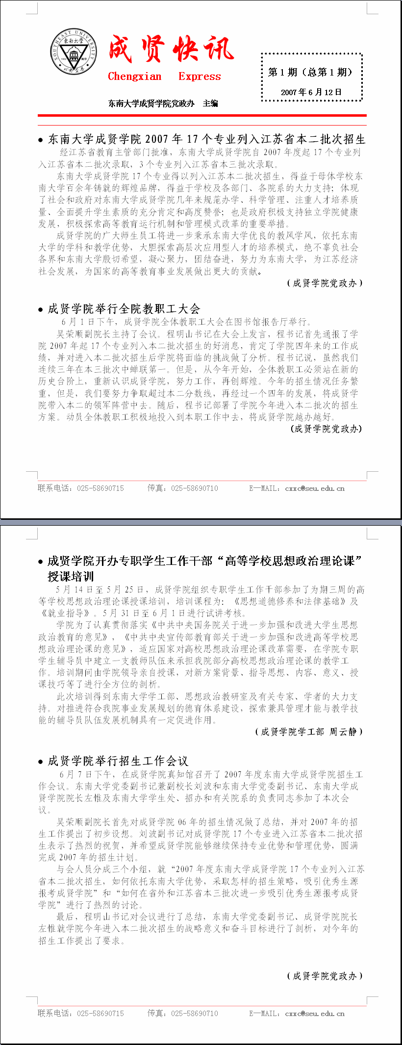 成贤快讯 第01期(总第01期) 2007年06月12日