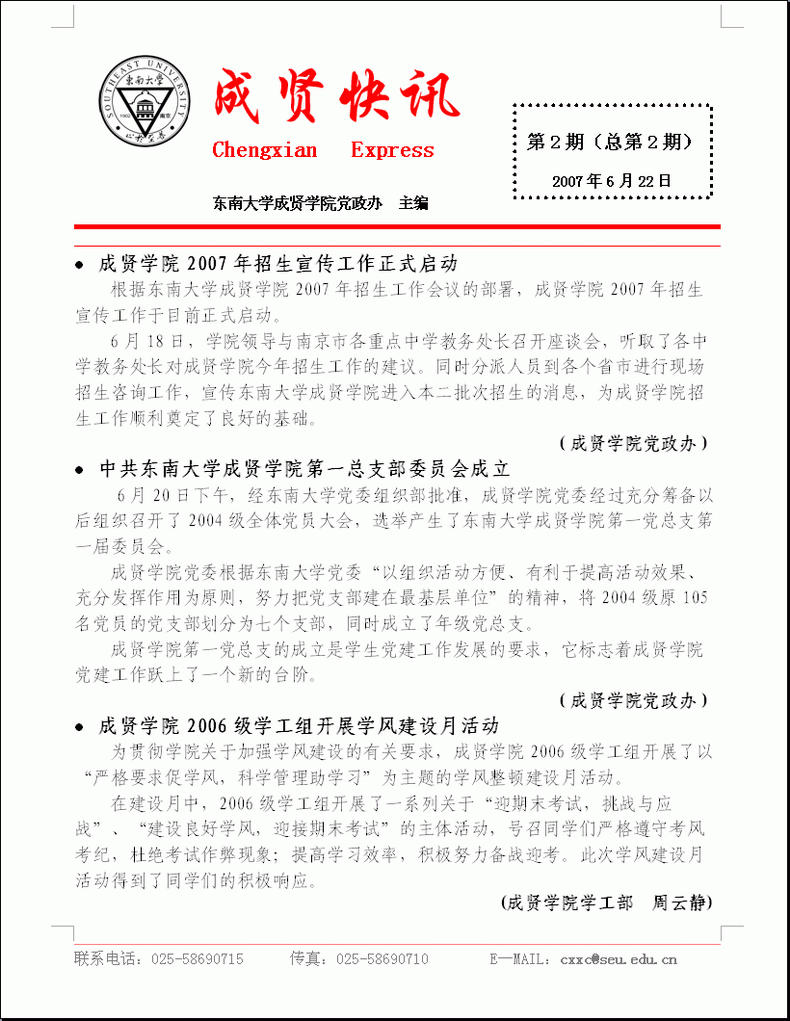 成贤快讯 第02期(总第02期) 2007年06月22日