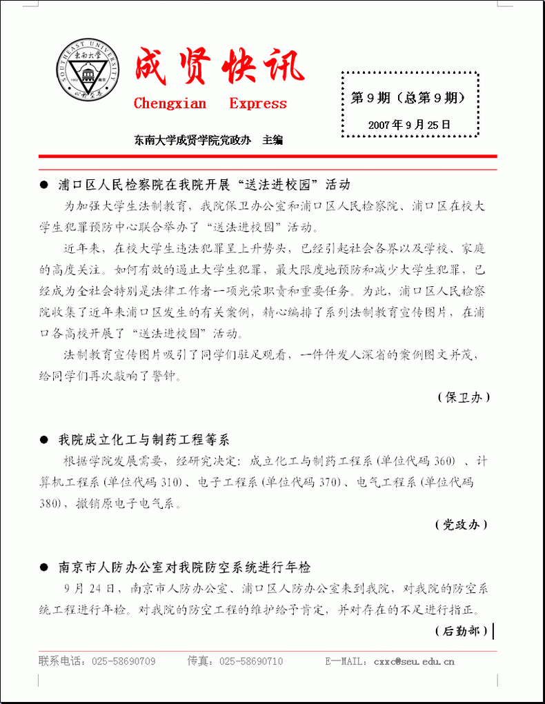 成贤快讯 第09期(总第09期) 2007年09月25日