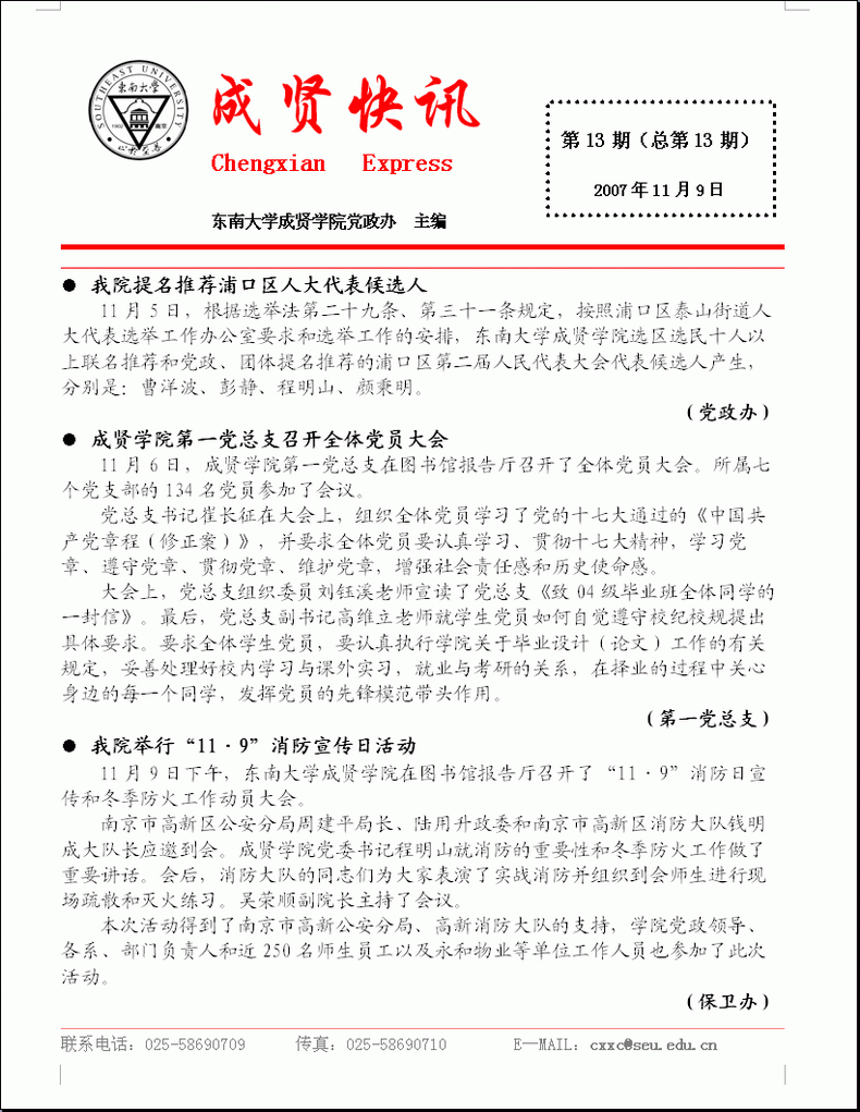成贤快讯 第13期(总第13期) 2007年11月09日