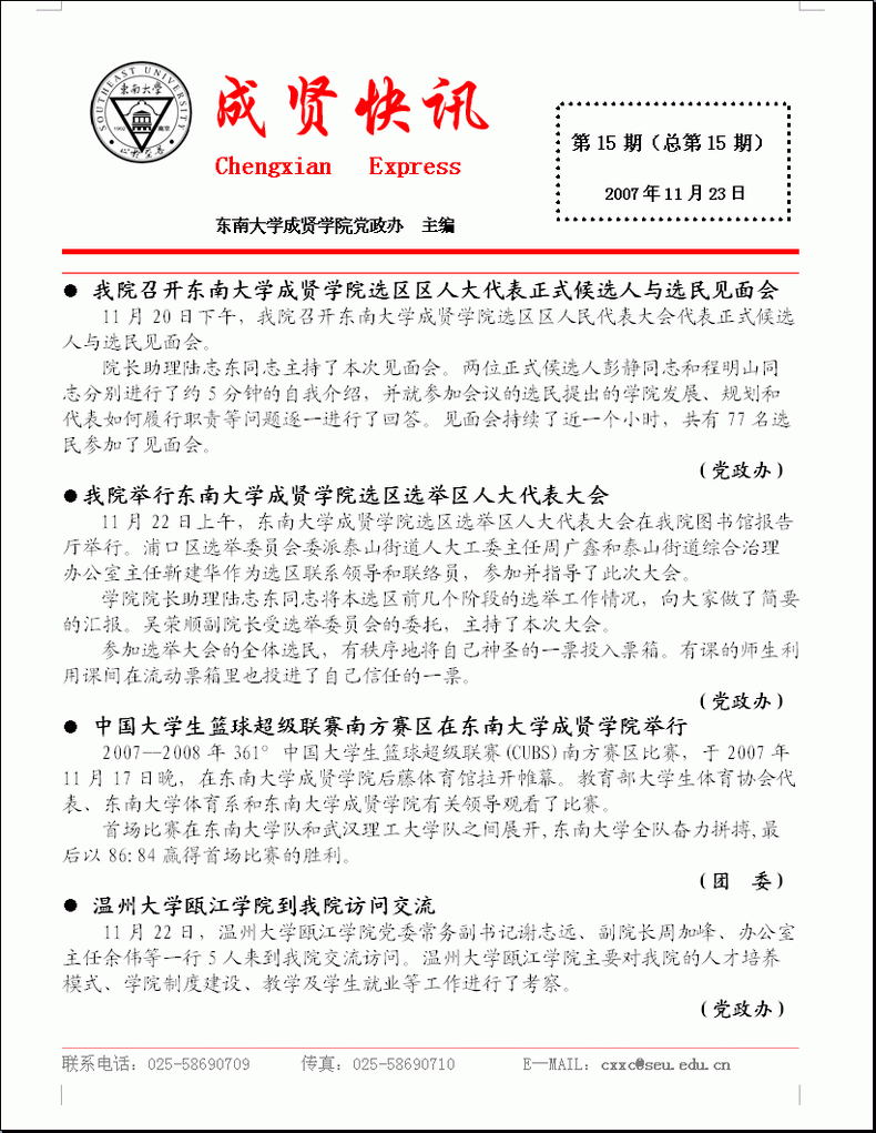 成贤快讯 第15期(总第15期) 2007年11月23日