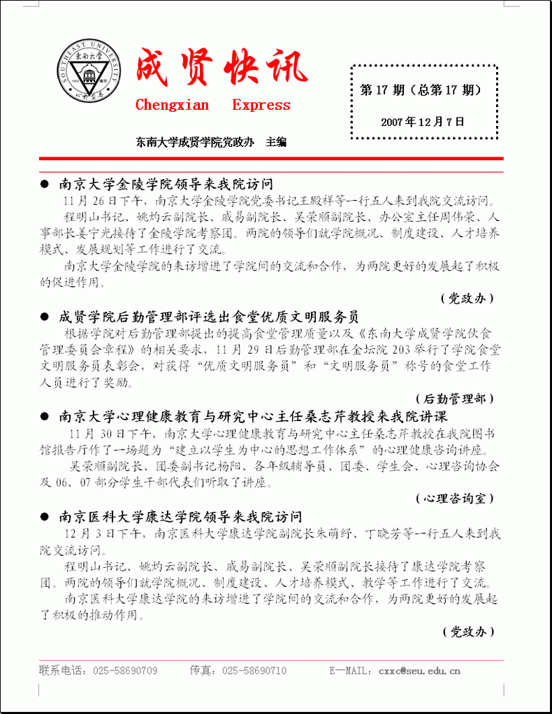 成贤快讯 第17期(总第17期) 2007年12月07日