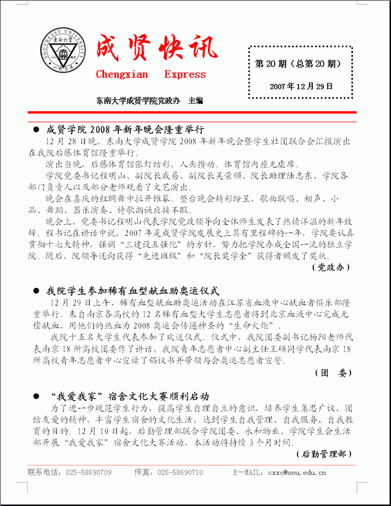 成贤快讯 第20期(总第20期) 2007年12月29日