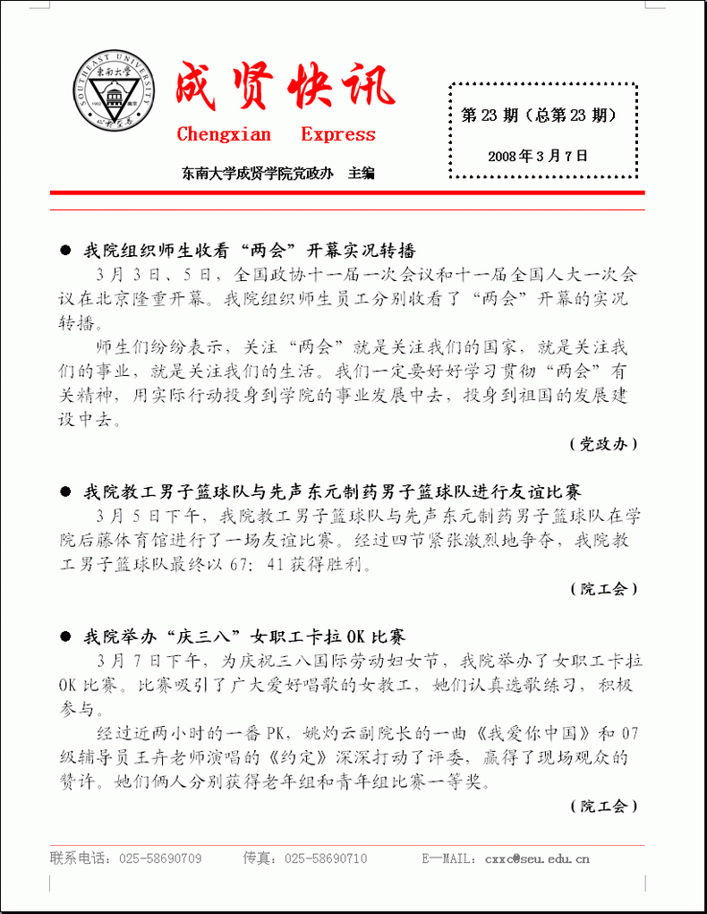 成贤快讯 第23期(总第23期) 2008年03月07日