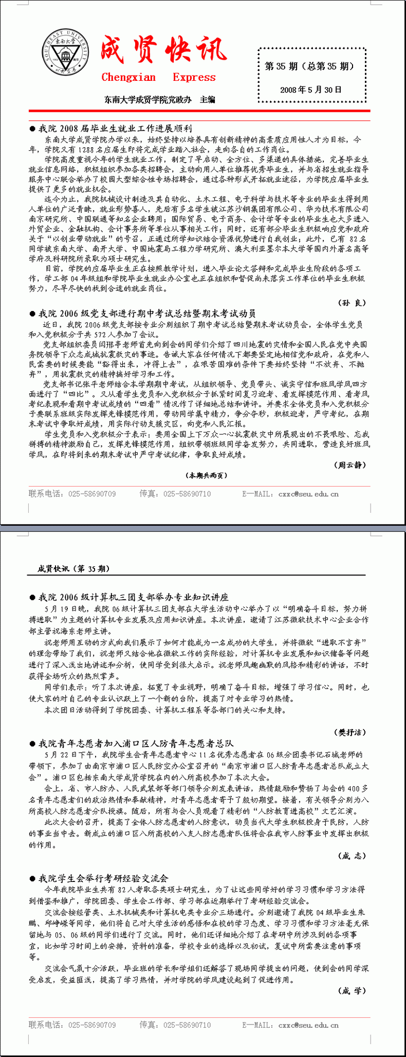 成贤快讯 第35期(总第35期) 2008年05月30日