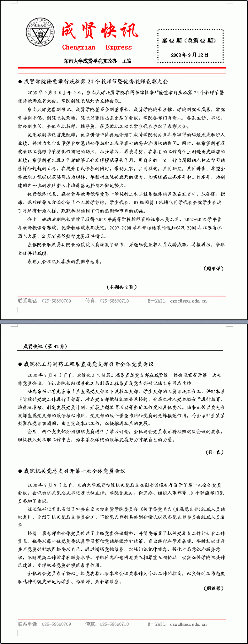 成贤快讯 第42期(总第42期) 2008年09月12日
