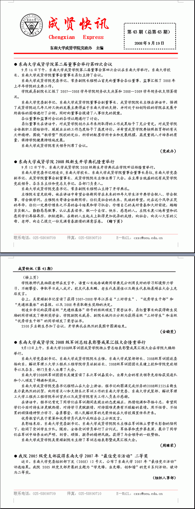 成贤快讯 第43期(总第43期) 2008年09月19日