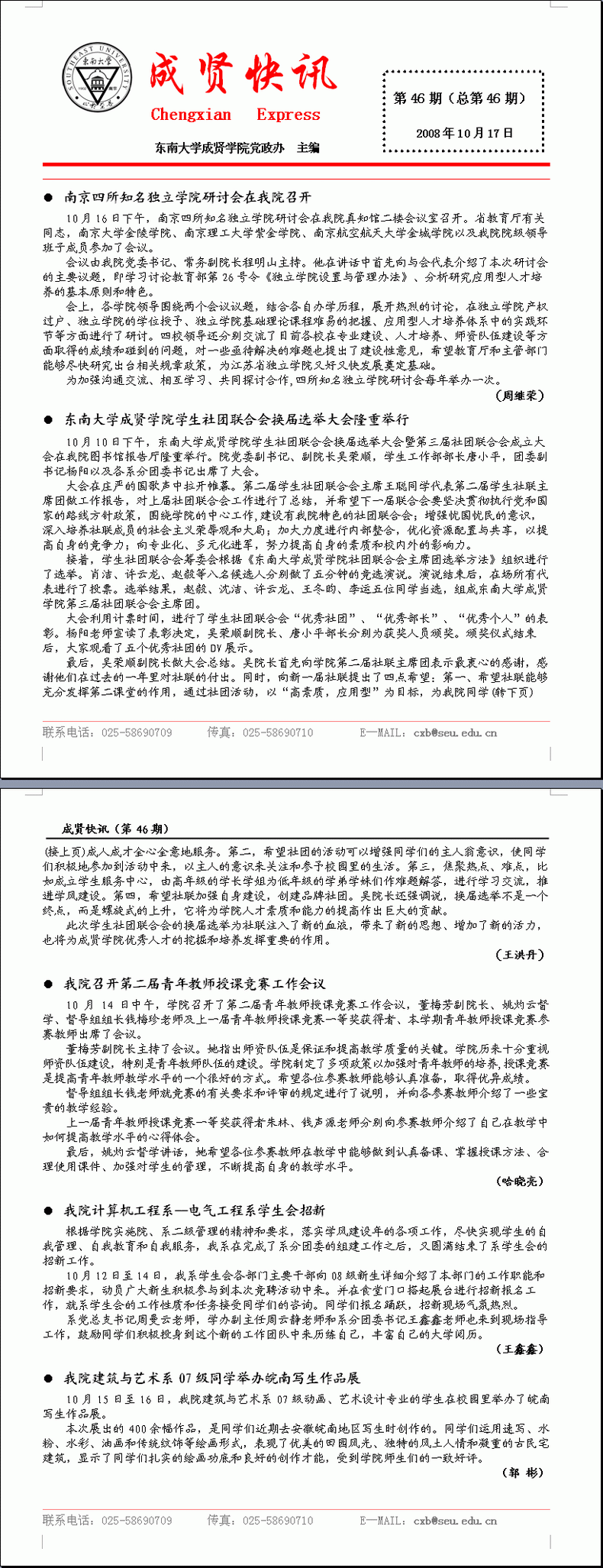 成贤快讯 第46期(总第46期) 2008年10月17日
