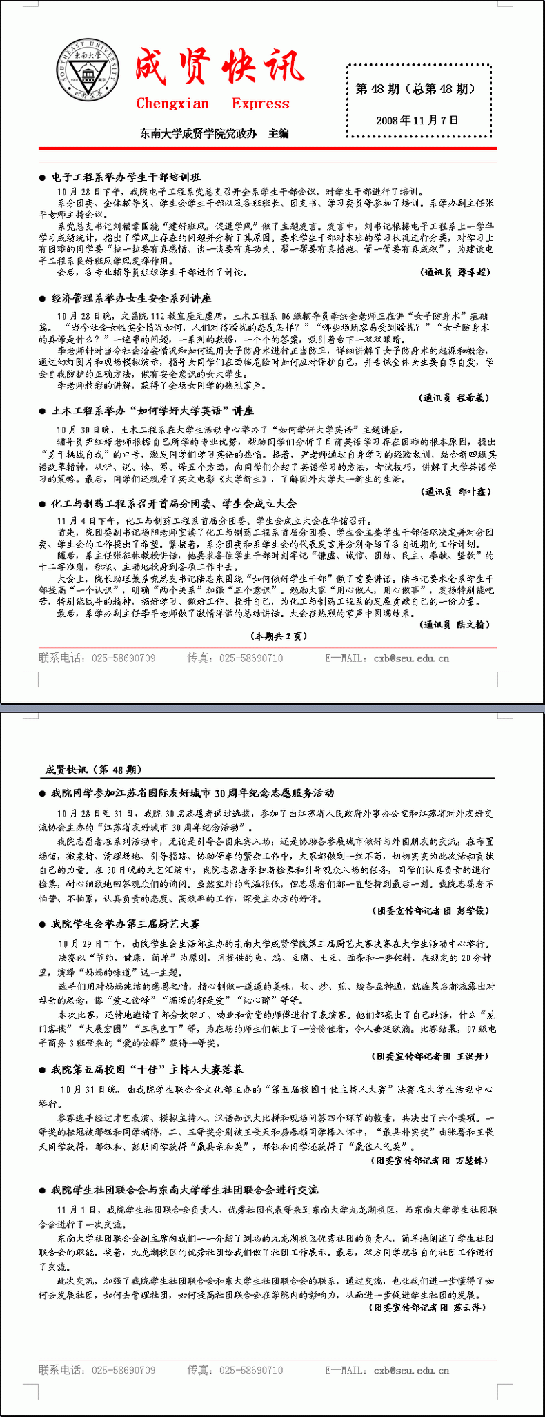 成贤快讯 第48期(总第48期) 2008年11月07日