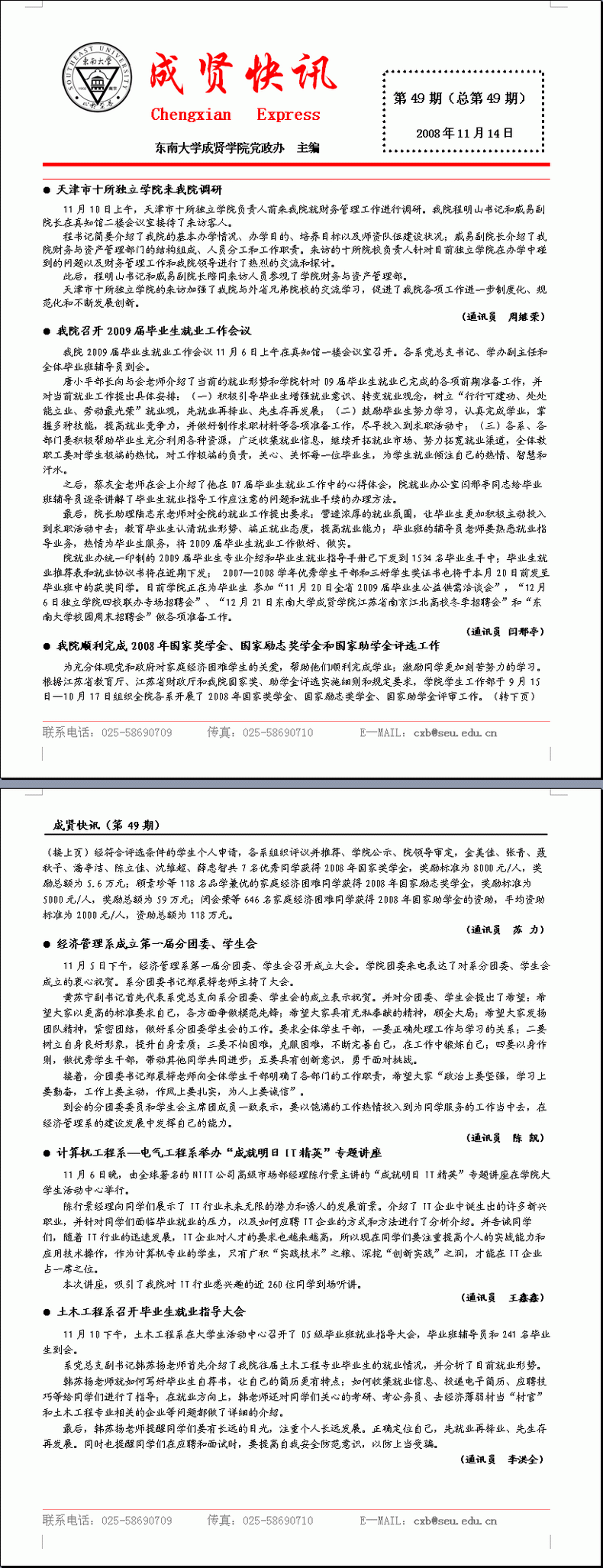 成贤快讯 第49期(总第49期) 2008年11月14日