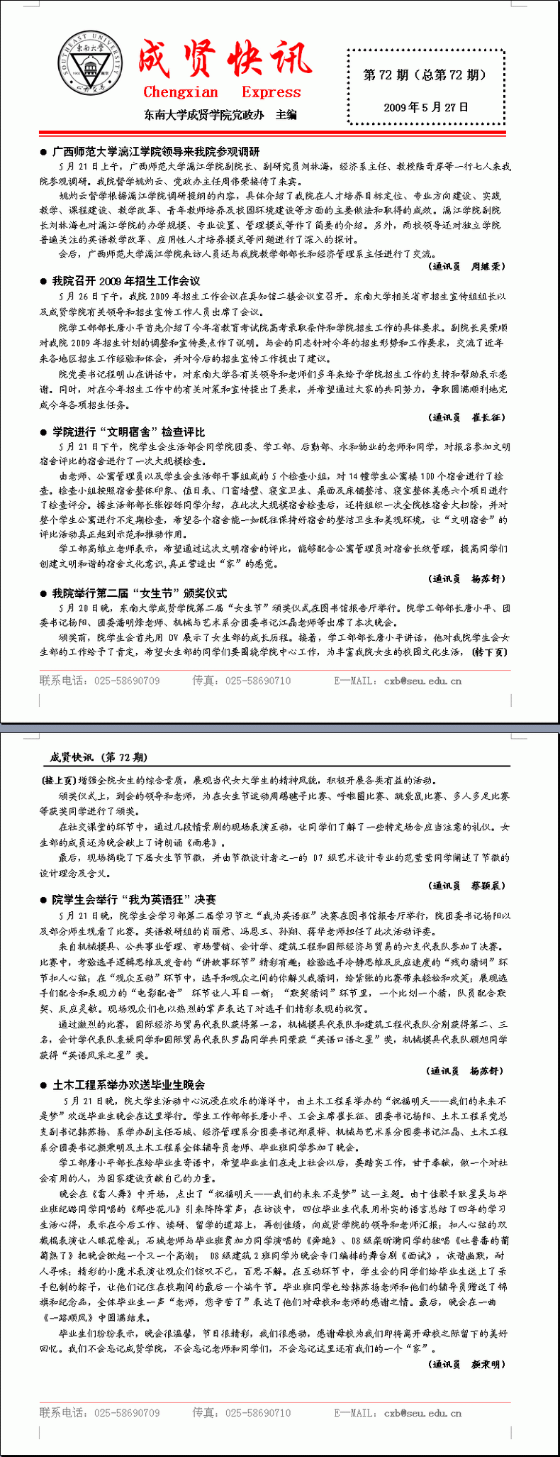 成贤快讯 第72期(总第72期) 2009年05月27日