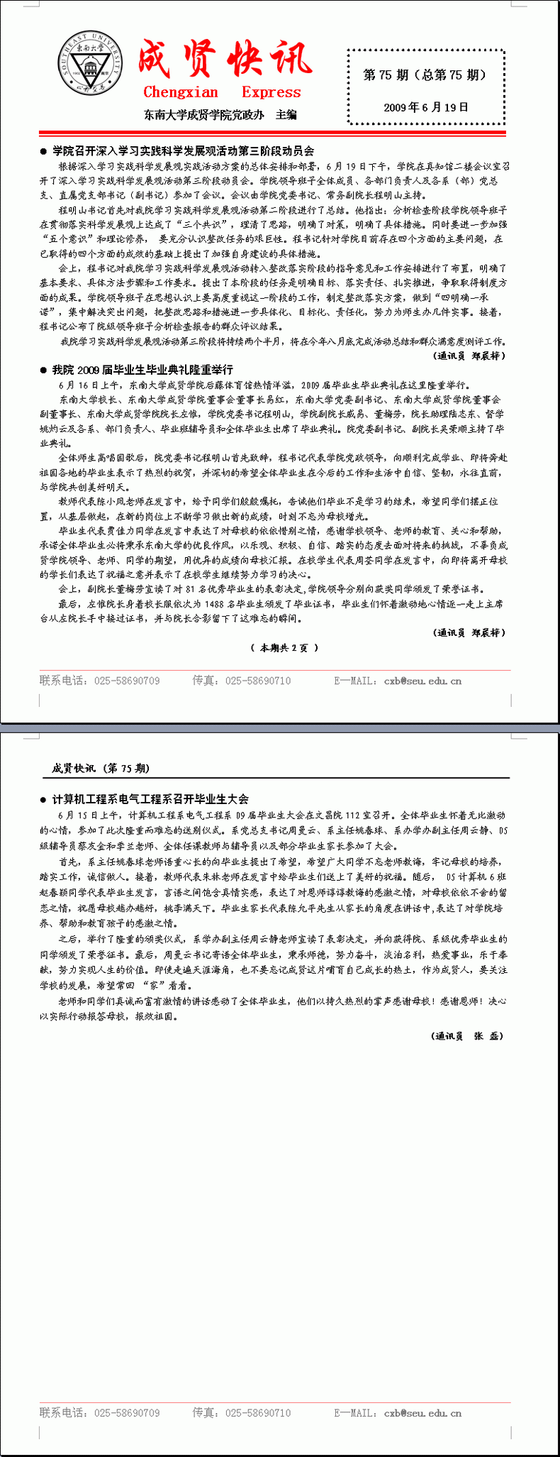 成贤快讯 第75期(总第75期) 2009年06月19日