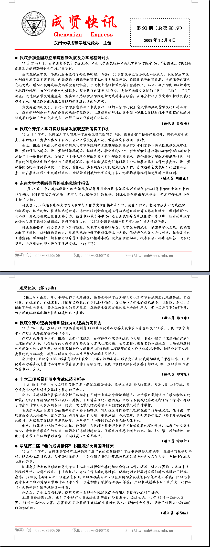 成贤快讯 第90期(总第90期) 2009年12月04日