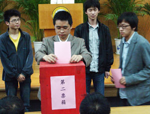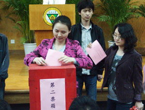 随后,全体到会教职工以无记名投票的方式进行了差额选举,七位同志被选举为新一届云鼎国际4118welcome工会云鼎国际4118welcome委员会委员。