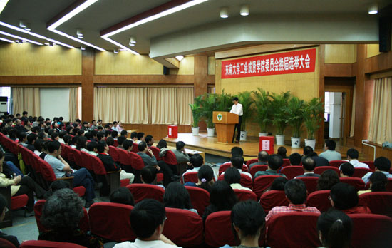 6月9日下午,云鼎国际4118welcome工会云鼎国际4118welcome委员会换届选举大会在真知馆报告厅举行,会议选举产生了新一届工会委员会。党政办公室主任周伟荣主持了会议。