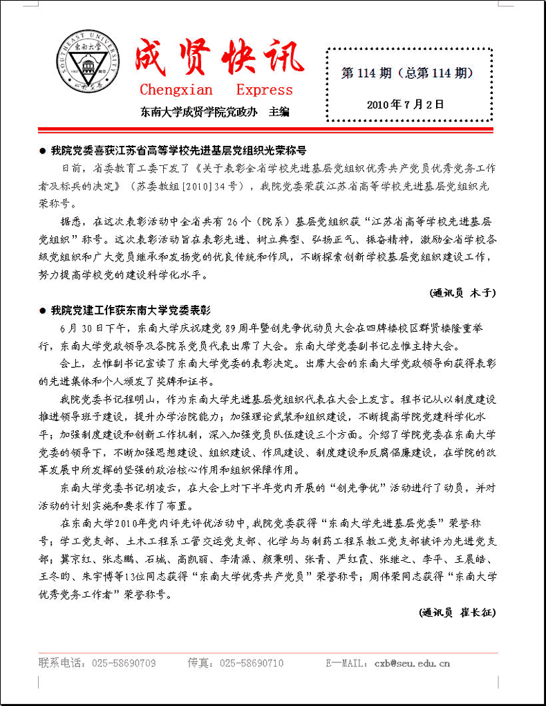 成贤快讯 第114期(总第114期) 2010年07月2日