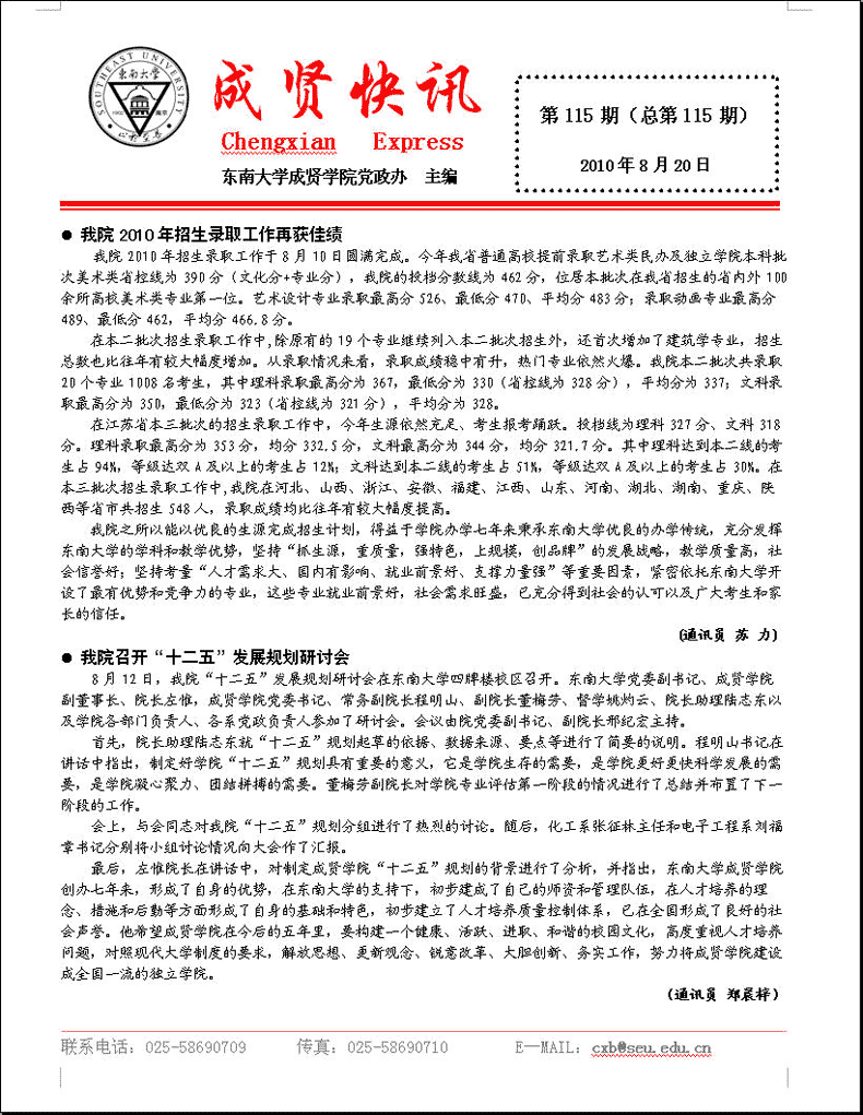 成贤快讯 第115期(总第115期) 2010年08月20日
