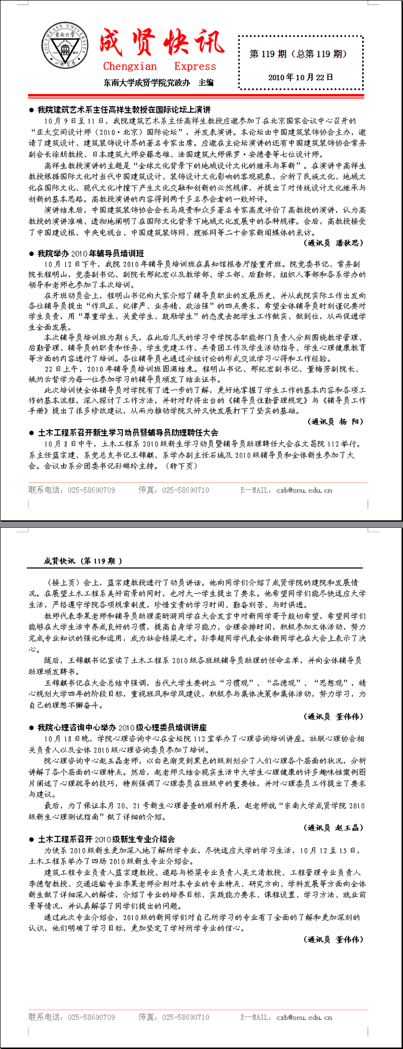 成贤快讯 第119期(总第119期) 2010年10月22日
