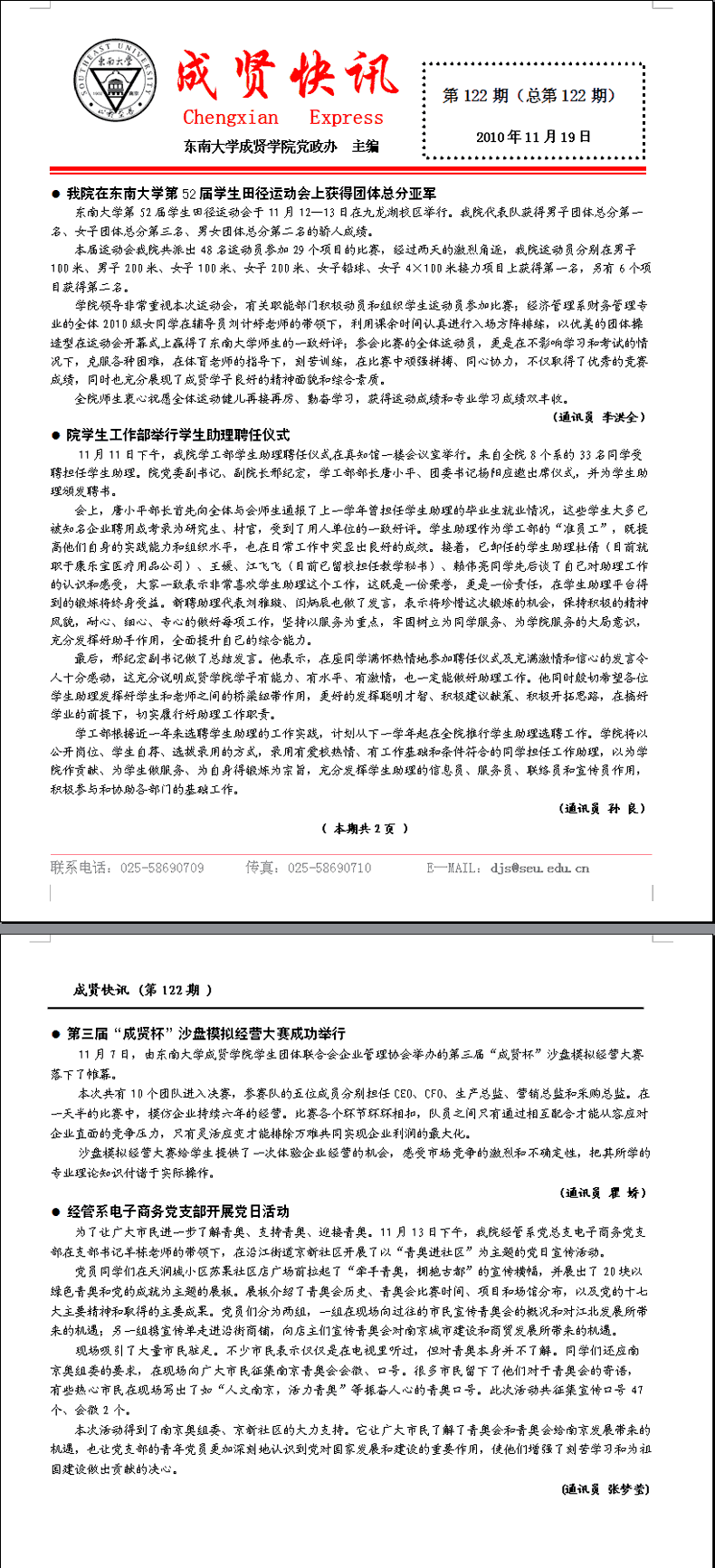 成贤快讯 第122期(总第122期) 2010年11月19日