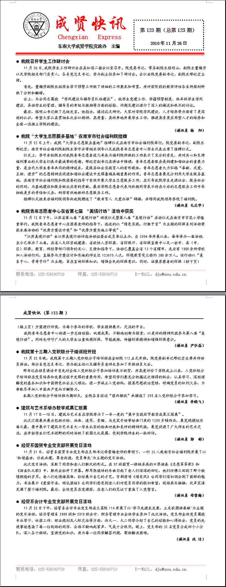 成贤快讯 第123期(总第123期) 2010年11月26日