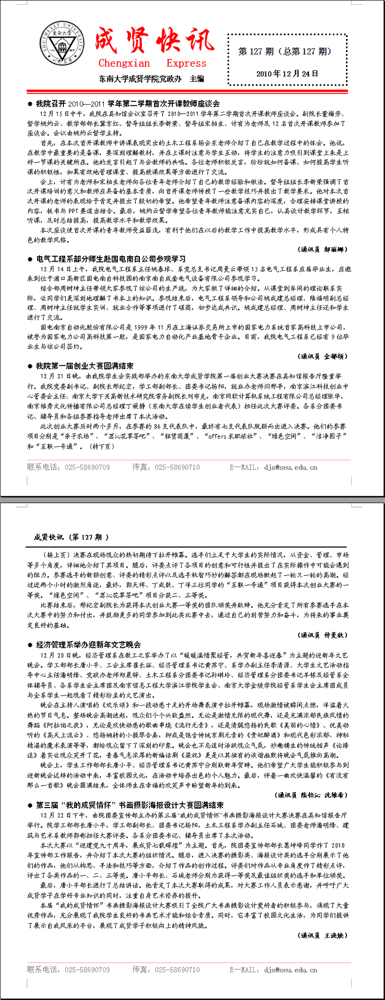 成贤快讯 第127期(总第127期) 2010年12月24日