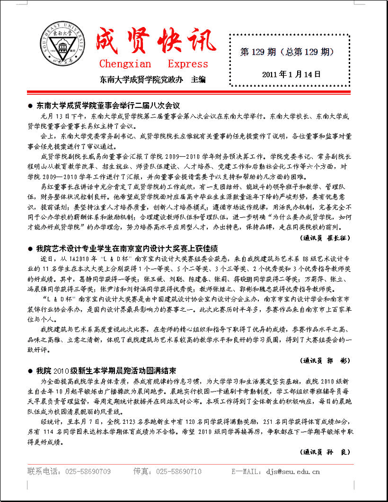 成贤快讯 第129期(总第129期) 2011年01月14日