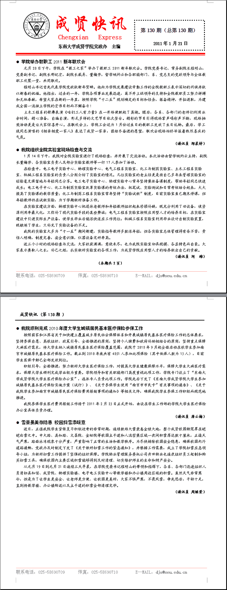 成贤快讯 第130期(总第130期) 2011年01月21日