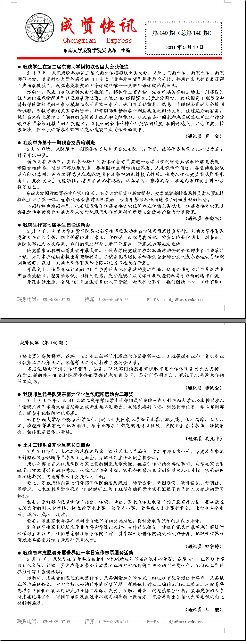 成贤快讯 第140期(总第140期) 2011年05月13日