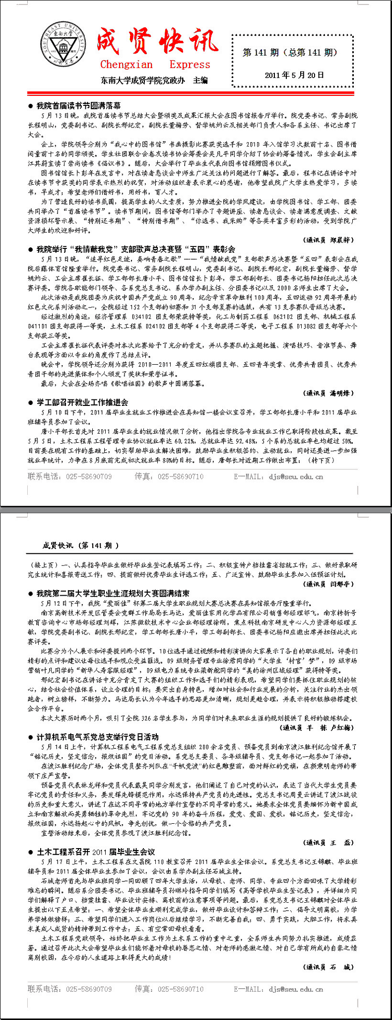 成贤快讯 第141期(总第141期) 2011年05月20日