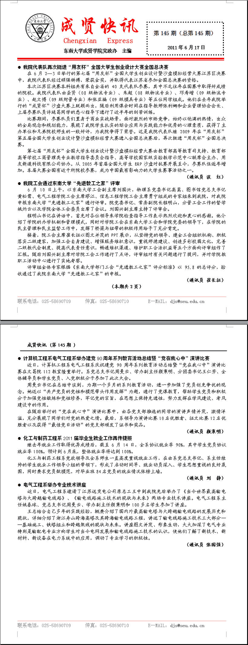 成贤快讯 第145期(总第145期) 2011年06月17日