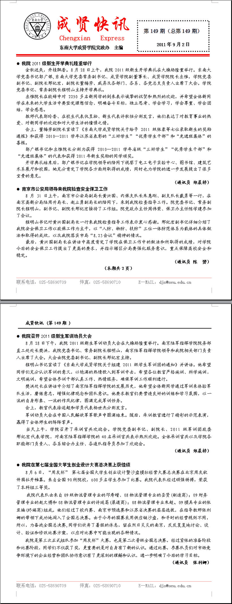 成贤快讯 第149期(总第149期) 2011年09月02日