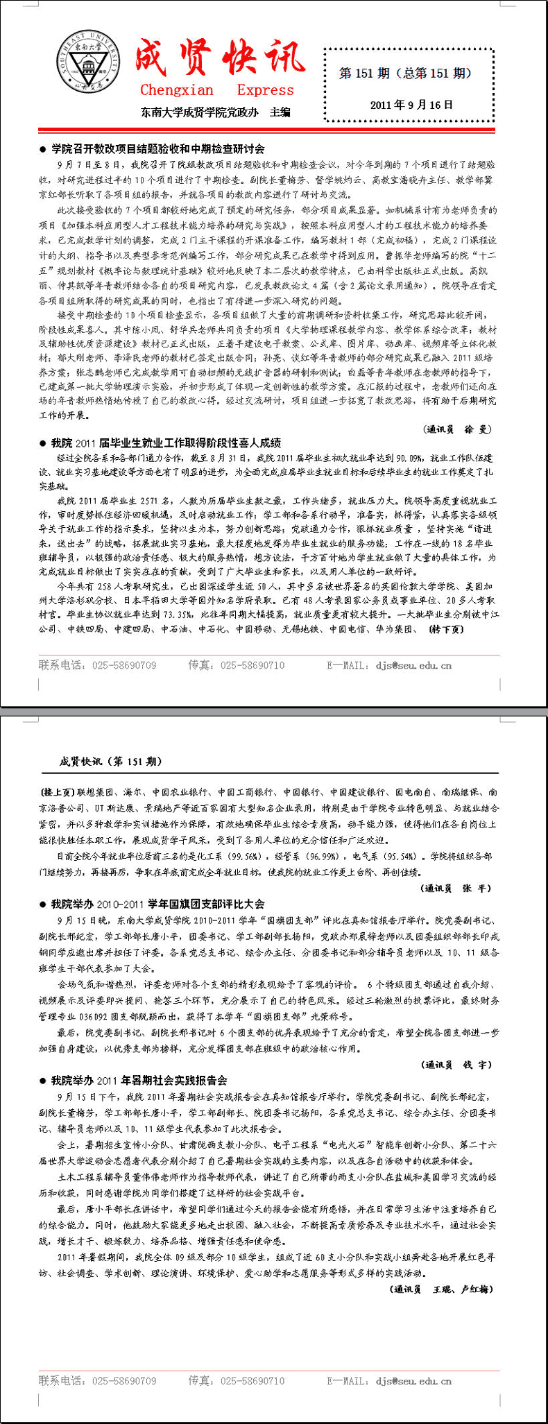 成贤快讯 第151期(总第151期) 2011年09月16日