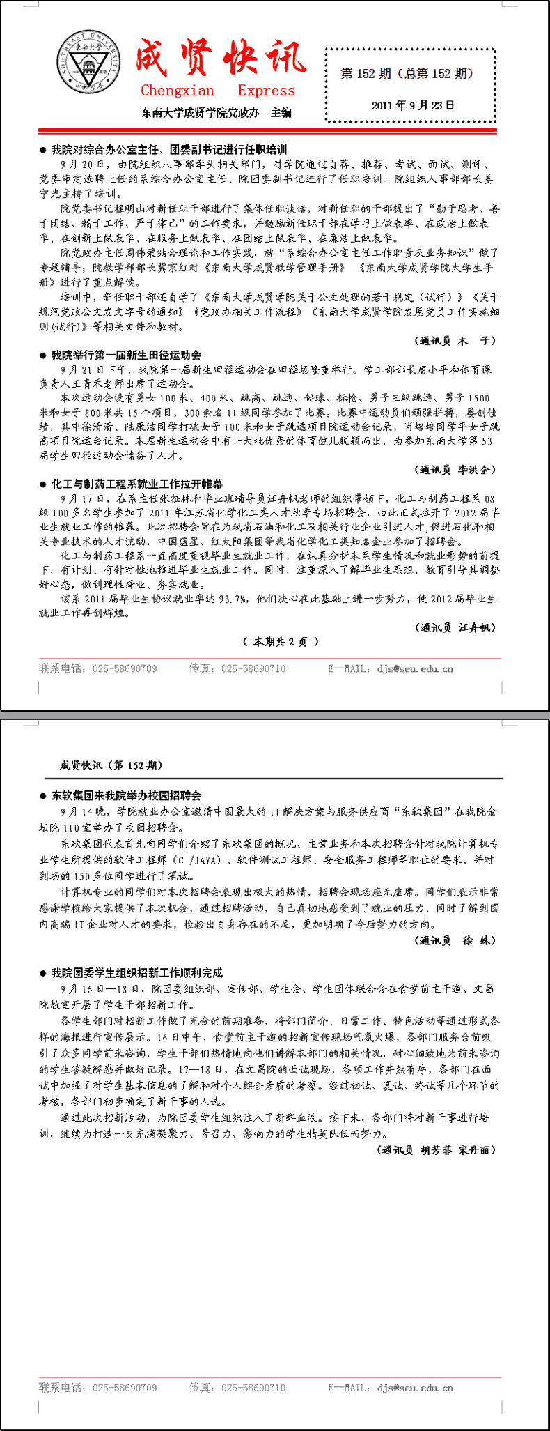 成贤快讯 第152期(总第152期) 2011年09月23日