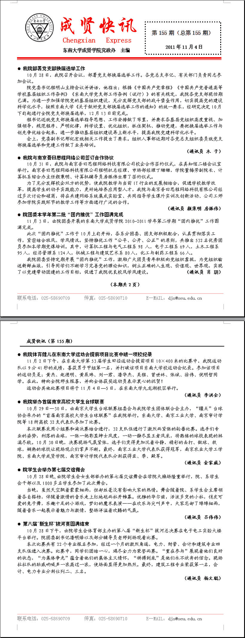 成贤快讯 第155期(总第155期) 2011年11月04日