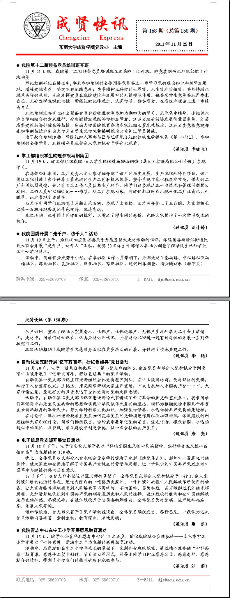 成贤快讯 第158期(总第158期) 2011年11月25日