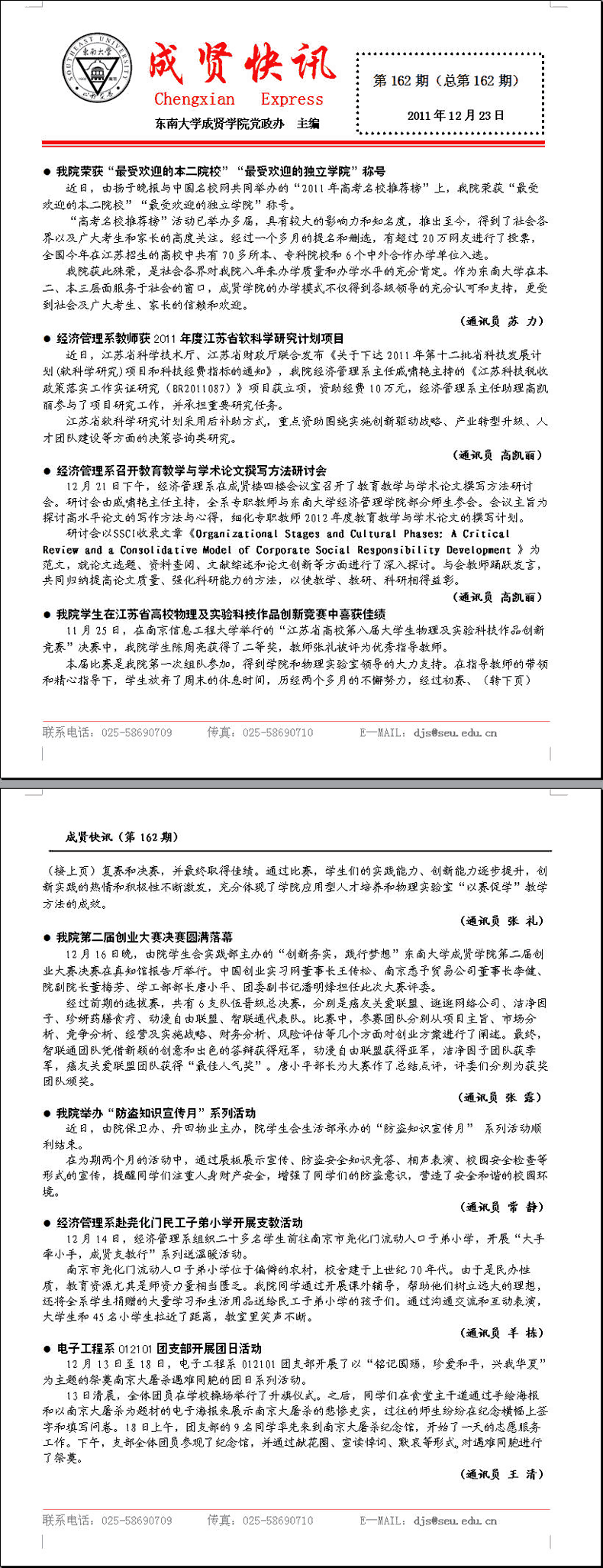 成贤快讯 第162期(总第162期) 2011年12月23日