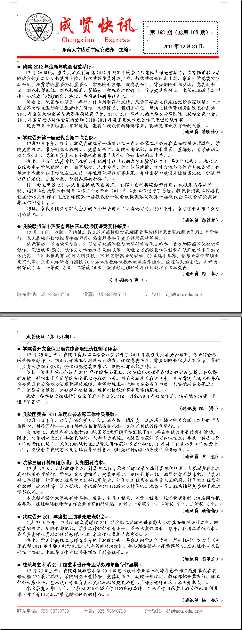 成贤快讯 第163期(总第163期) 2011年12月30日