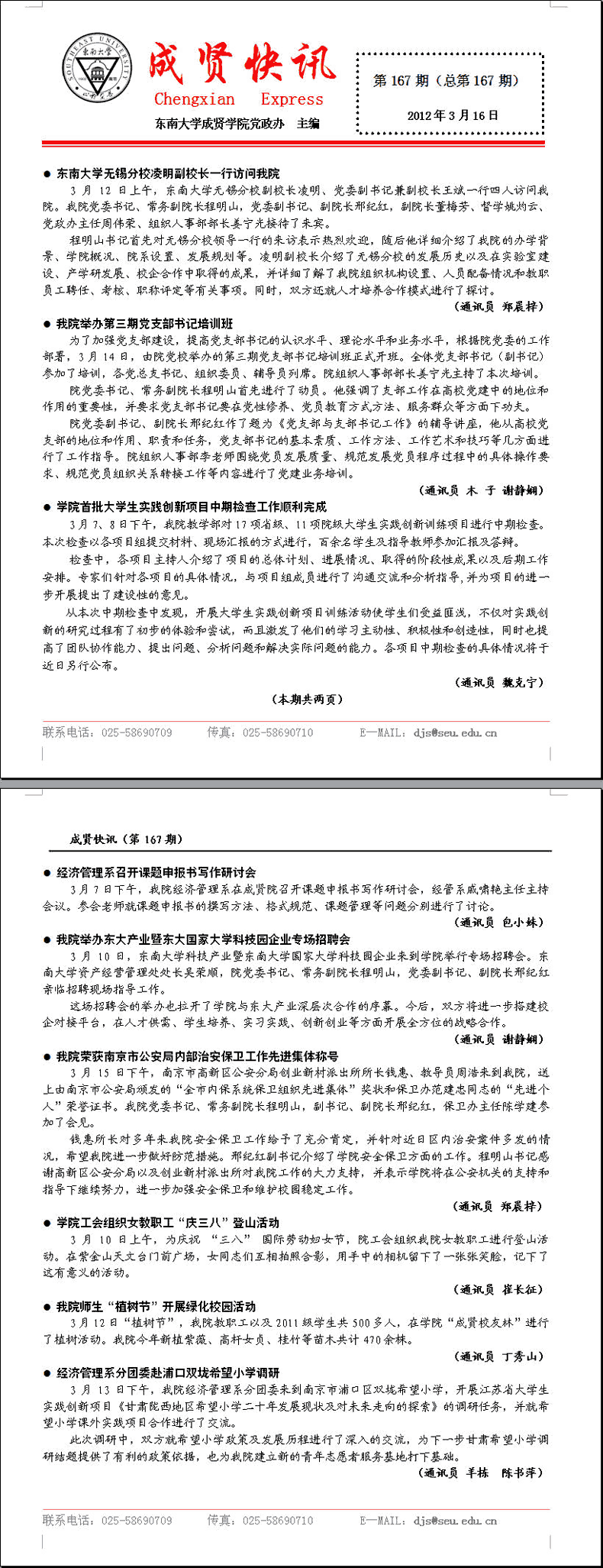 成贤快讯 第167期(总第167期) 2012年03月16日