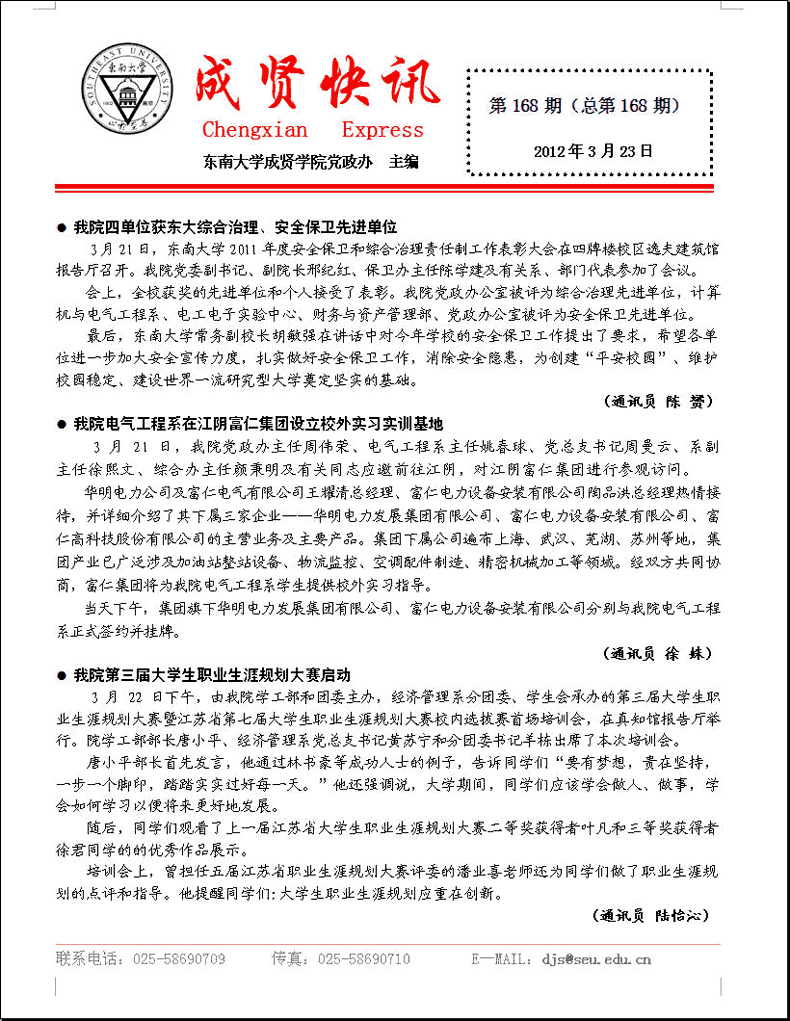 成贤快讯 第168期(总第168期) 2012年03月23日
