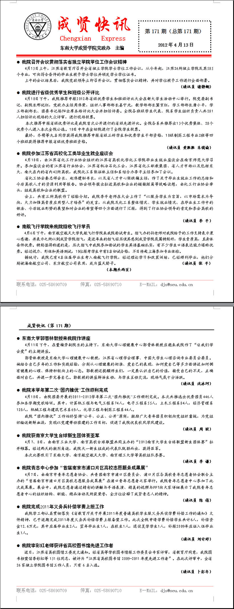 成贤快讯 第171期(总第171期) 2012年04月13日