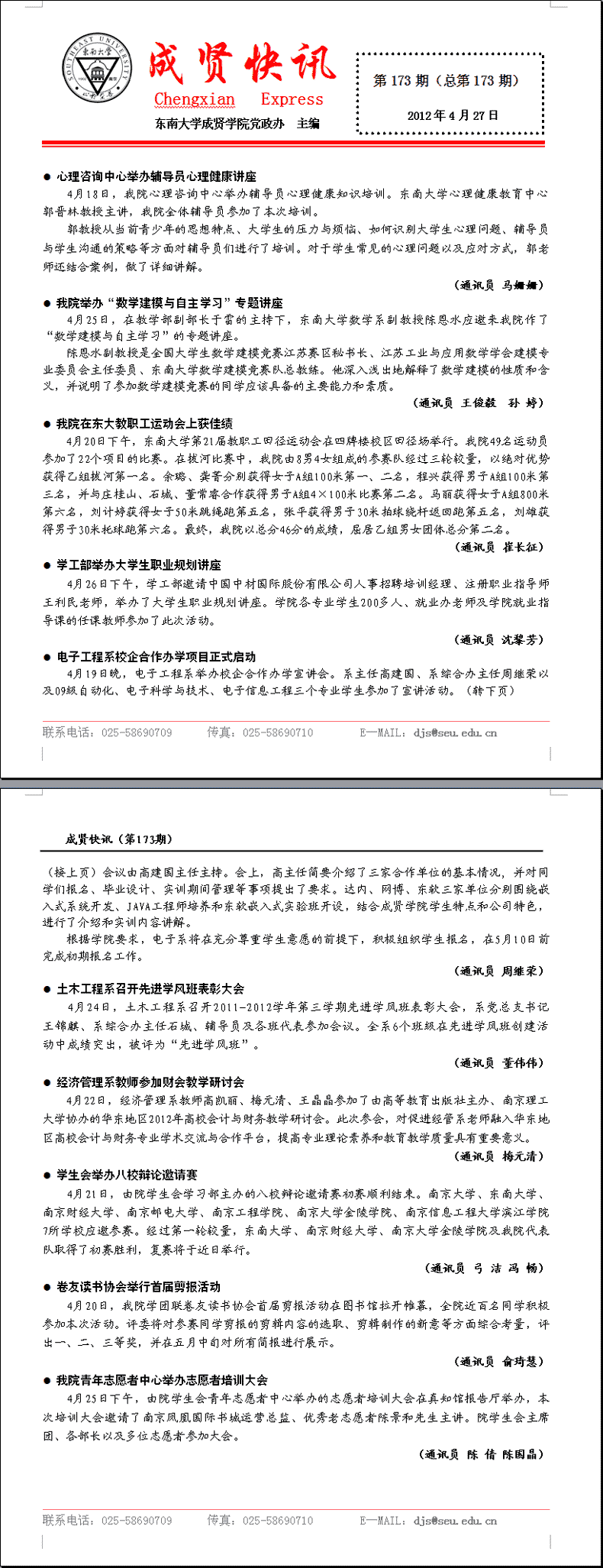 成贤快讯 第173期(总第173期) 2012年04月27日