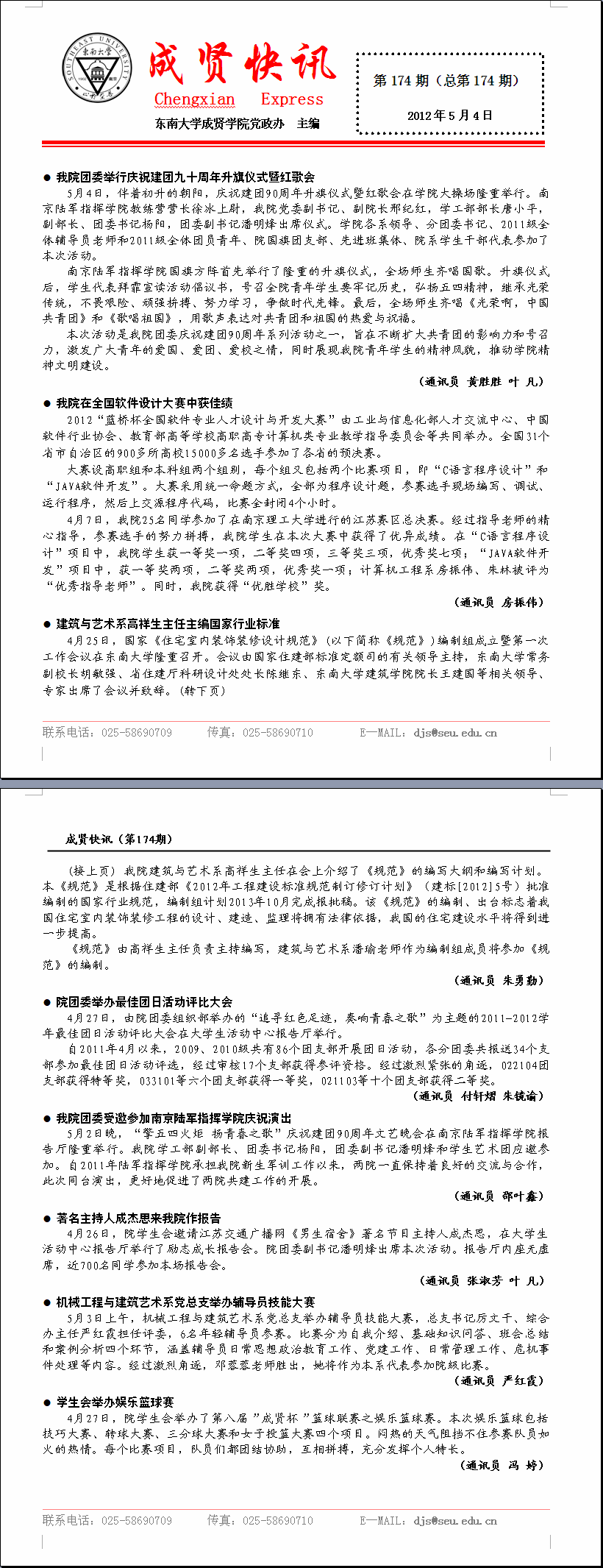 成贤快讯 第174期(总第174期) 2012年05月04日