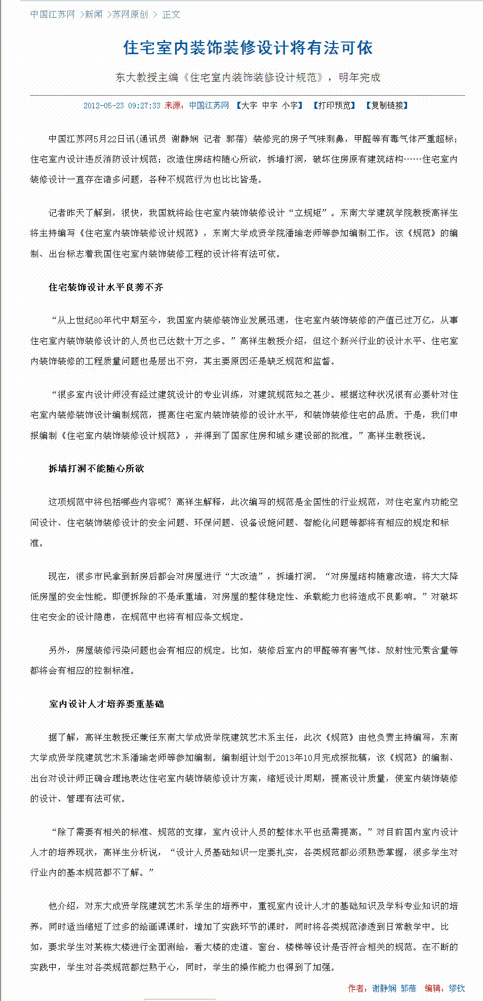 【中国江苏网】住宅室内装饰装修设计将有法可依