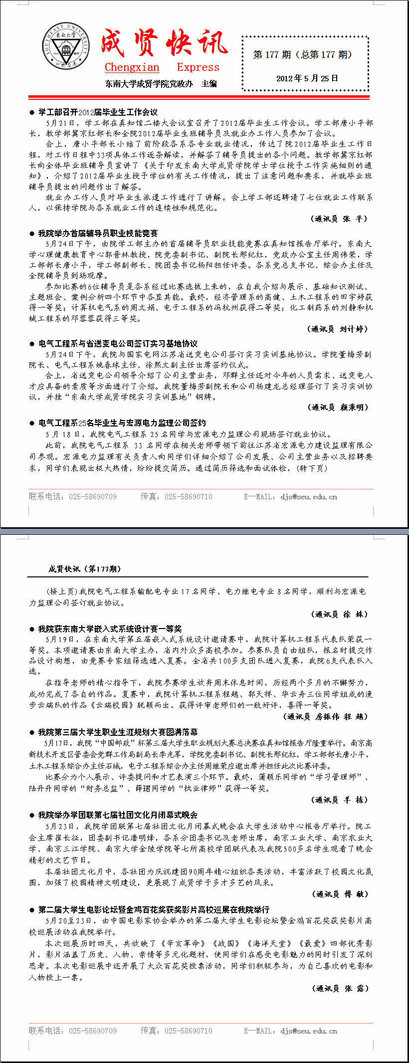 成贤快讯 第177期(总第177期) 2012年05月25日