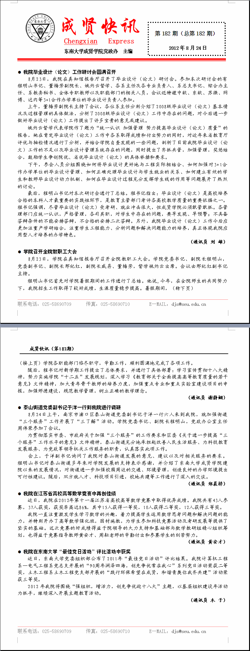 成贤快讯 第182期(总第182期) 2012年08月24日
