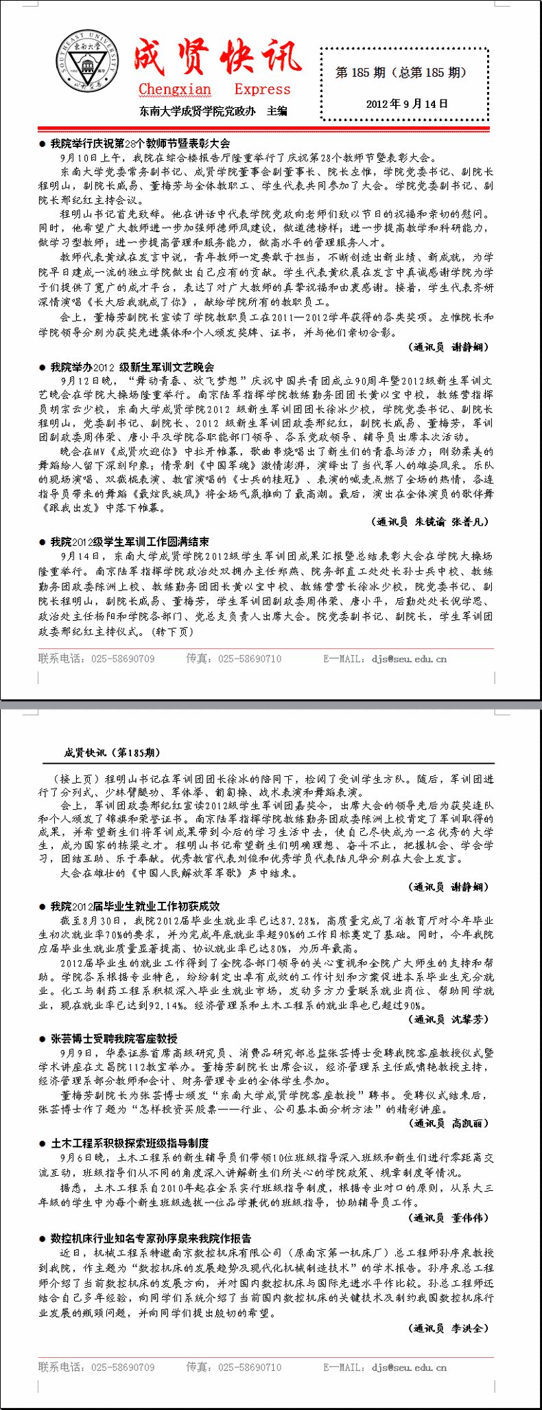 成贤快讯 第185期(总第185期) 2012年09月14日