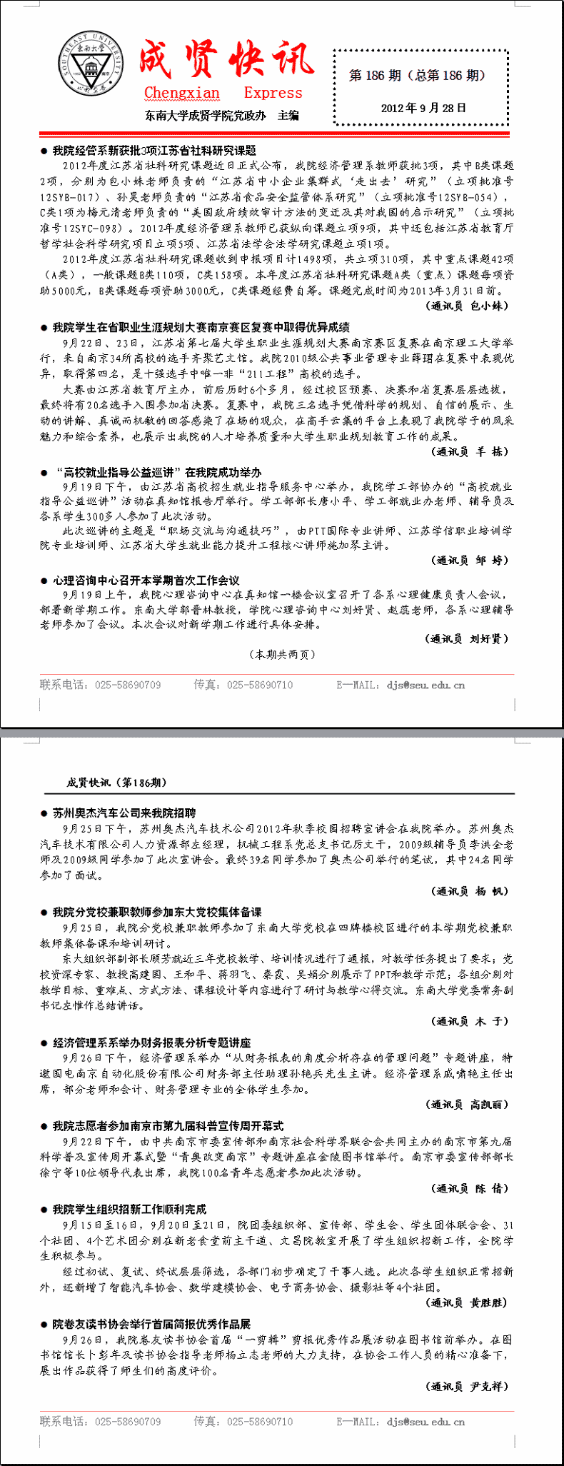 成贤快讯 第186期(总第186期) 2012年09月28日