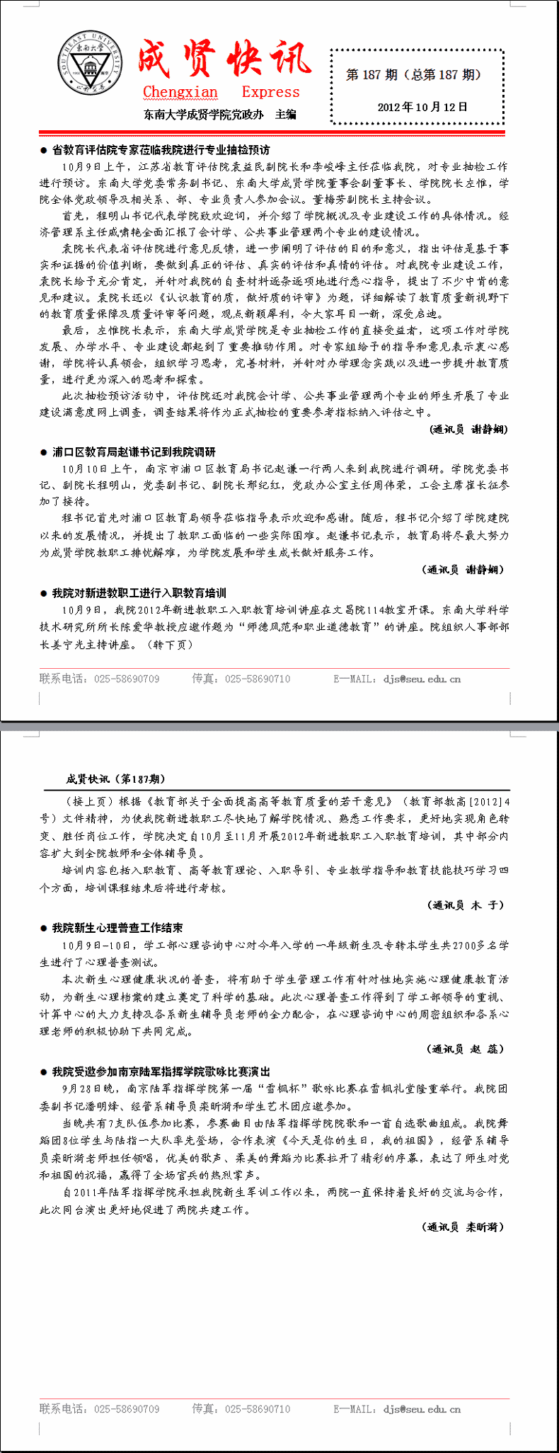 成贤快讯 第187期(总第187期) 2012年10月12日