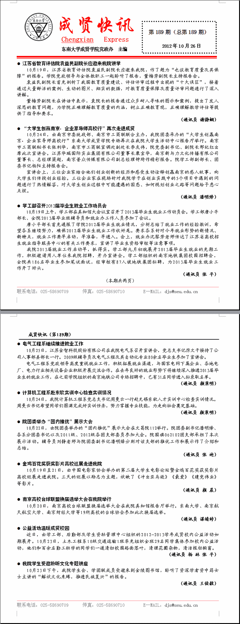 成贤快讯 第189期(总第189期) 2012年10月26日